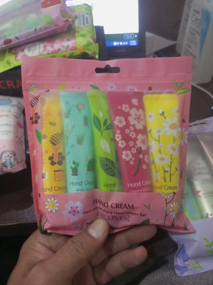 Pamper your hands with this luxurious 5pcs Plant & Fruit Fragrance Hand Cream Set. Each tube is infused with natural plant extracts and fruit essences, providing deep hydration and nourishment to keep your skin soft, smooth, and delicately scented.